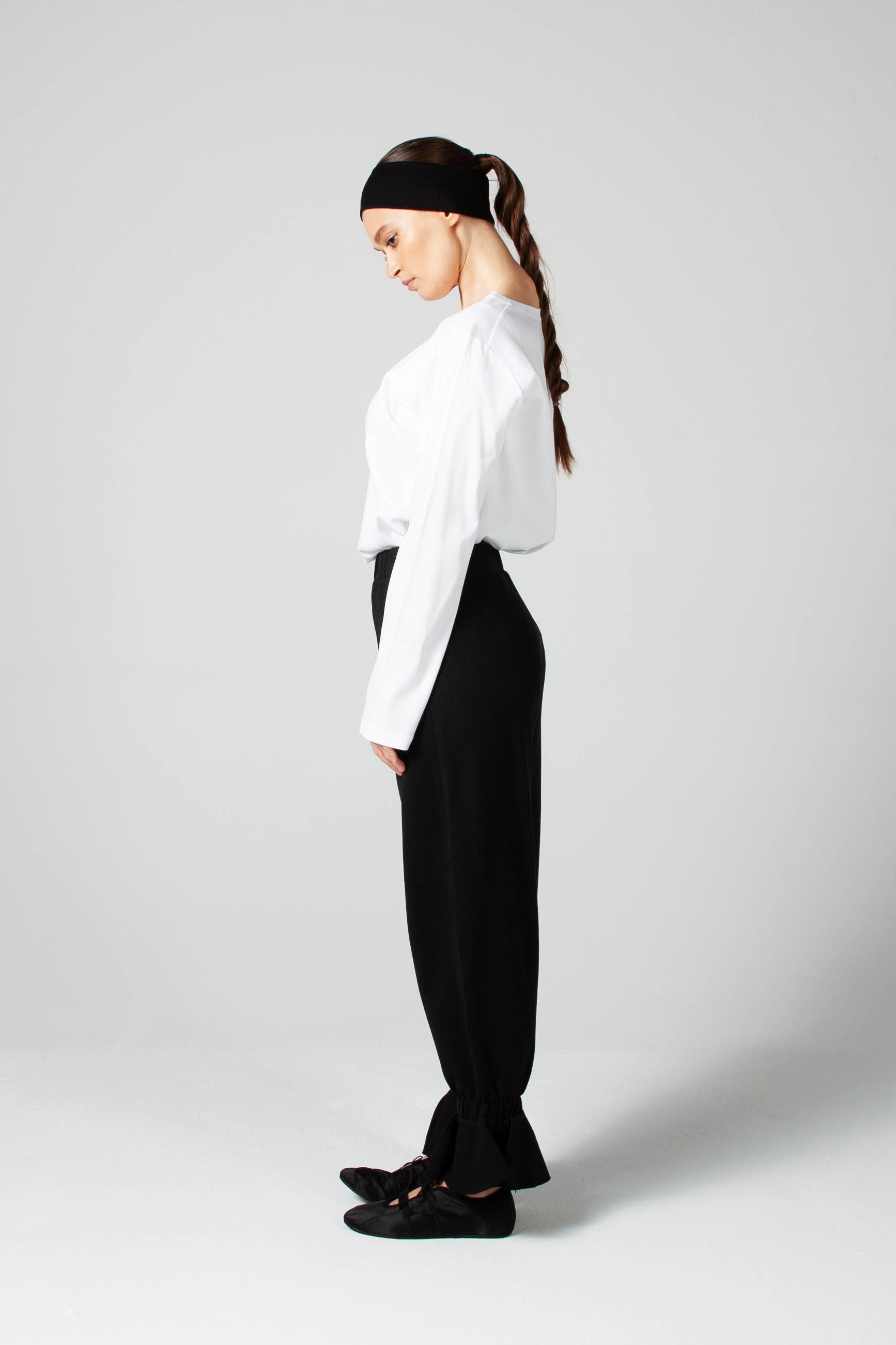 Oh wow! We finally made these pants. From spontaneous scratch that Kristina drew during the online stretching lesson to the final product: elegant sweatpants with ruffles.